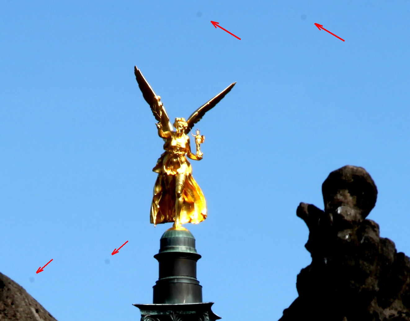 for zooming to image detail 1:1 of Peace- angel please click on the photo | Dust or dirt on the Sensor of digital SLR cameras can rapidly limit the fun of photographing. On the left side you see the dramatic Sensor polution of a brandnew, original packaged Canon EOS 5d mark II bought at Photo Nuerbauer, Munich Germany.